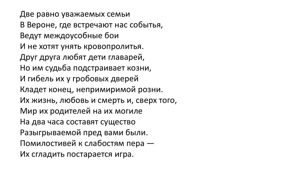 Две равно уважаемых семьиВ Вероне, где встречают нас событья,