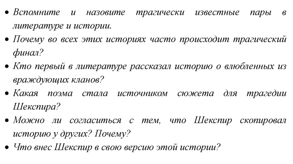 Вспомните и назовите трагически известные пары влитературе и истории.