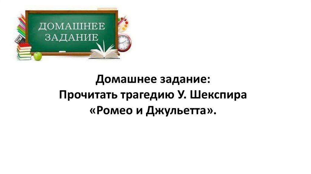 Домашнее задание:Прочитать трагедию У. Шекспира