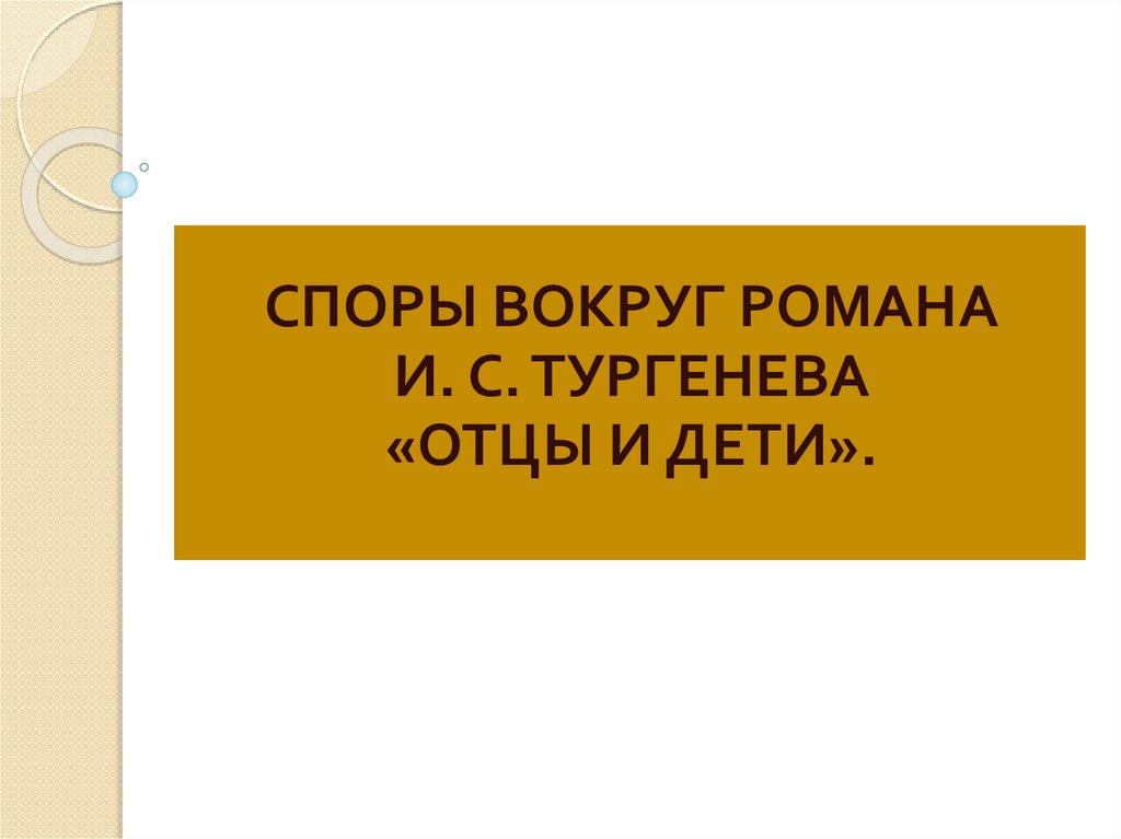СПОРЫ ВОКРУГ РОМАНАИ. С. ТУРГЕНЕВА