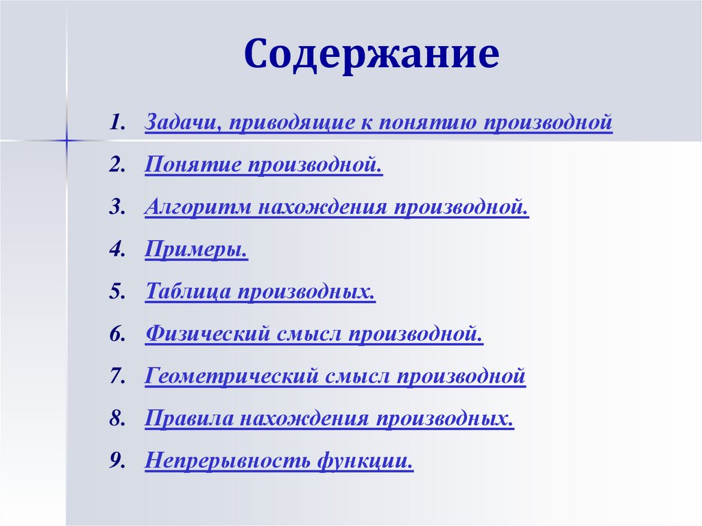 Содержание1. Задачи, приводящие к понятию производной