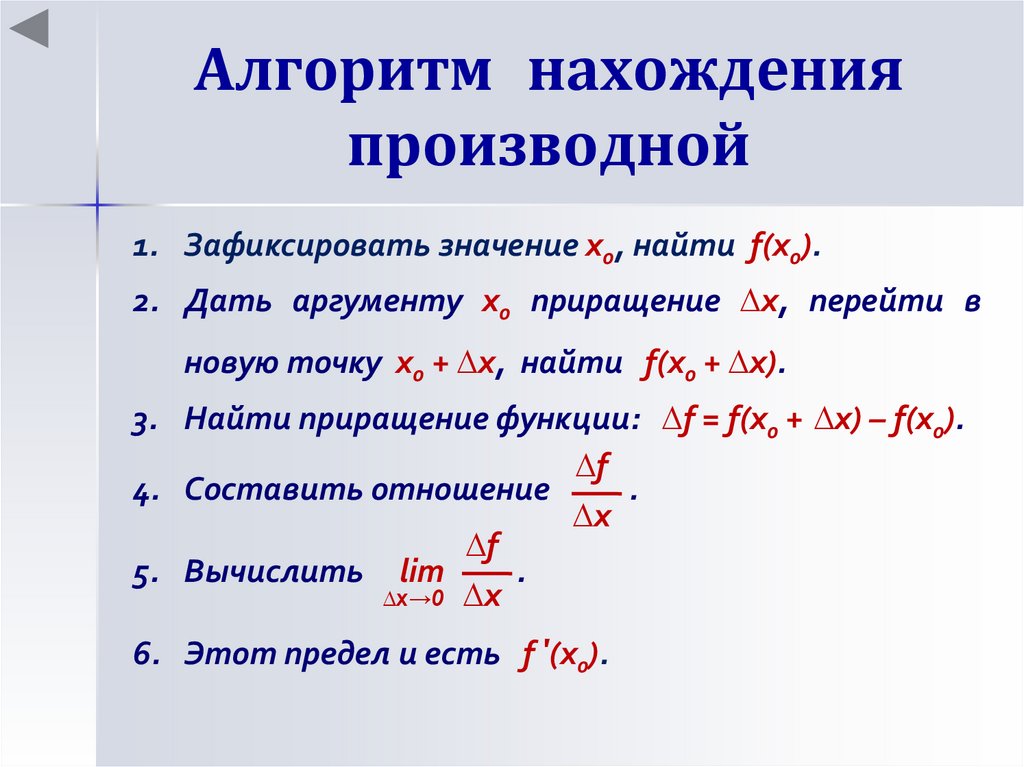 3. Алгоритм нахождения производной.