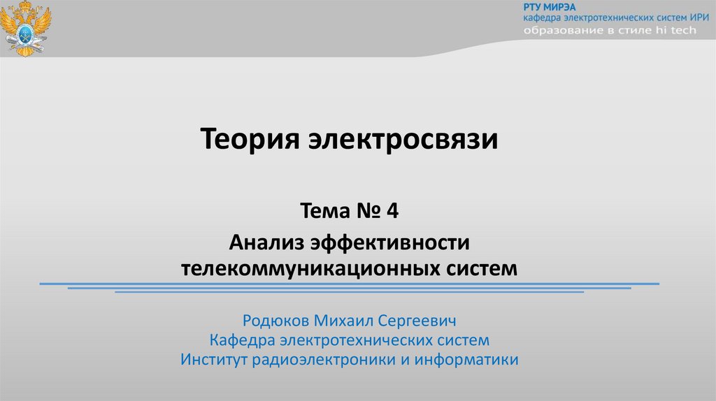 РТУ МИРЭАкафедра электротехнических систем