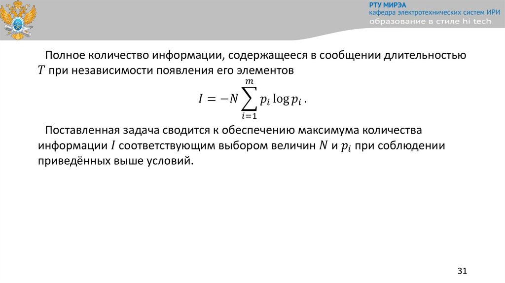 Количество информации определяется средней скоростью передачи