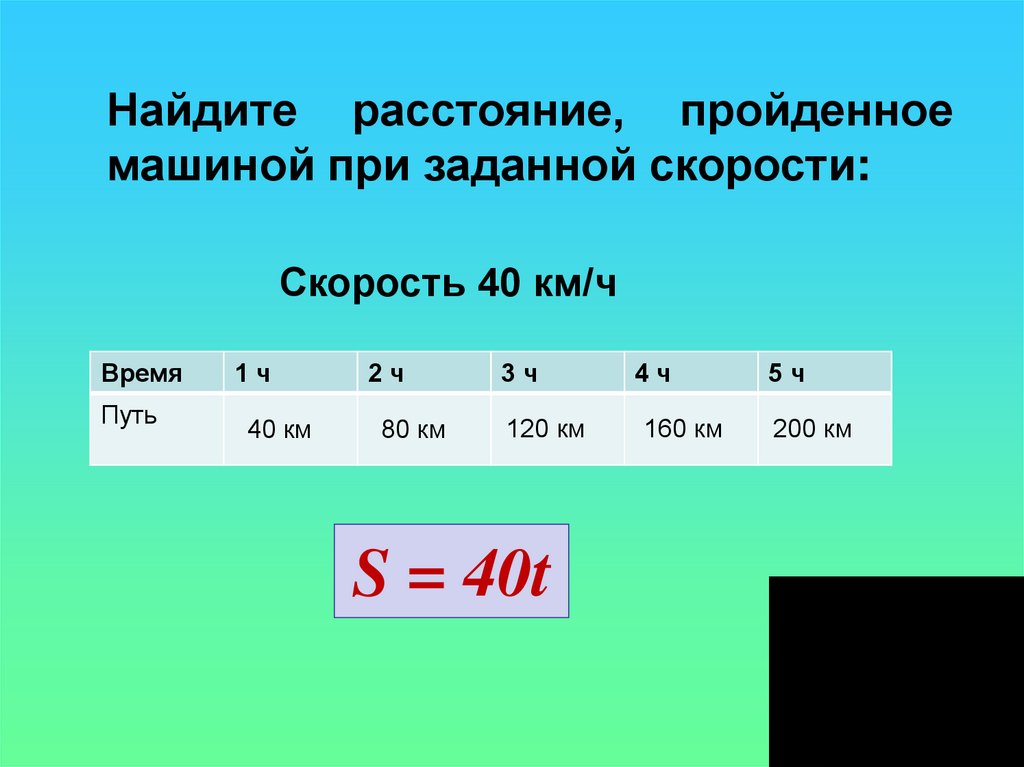 Найдите расстояние, пройденноемашиной при заданной скорости: