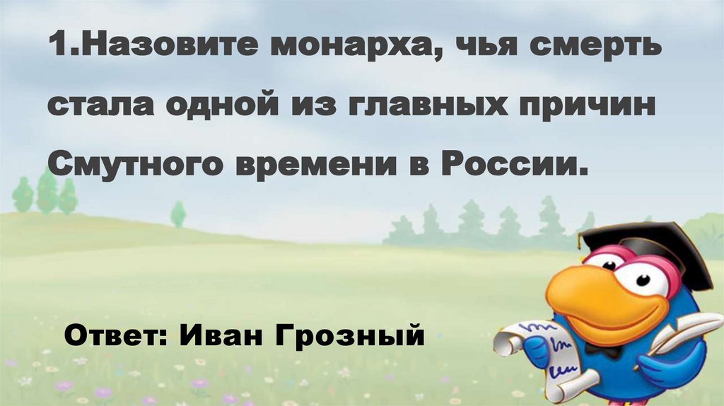 1.Назовите монарха, чья смертьстала одной из главных причин
