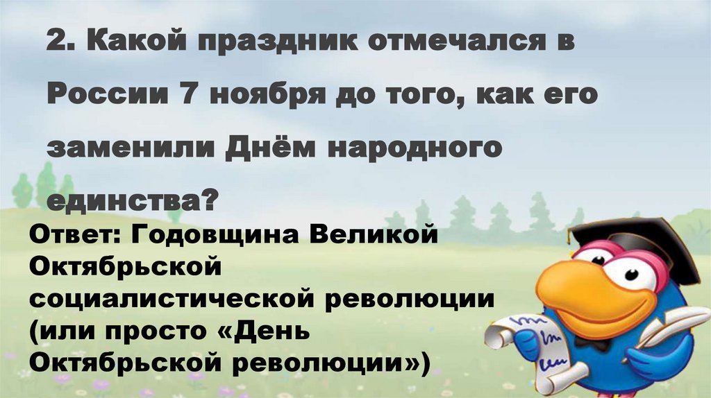 2. Какой праздник отмечался вРоссии 7 ноября до того, как его