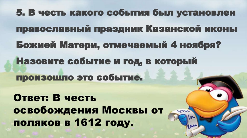 5. В честь какого события был установленправославный праздник Казанской иконы