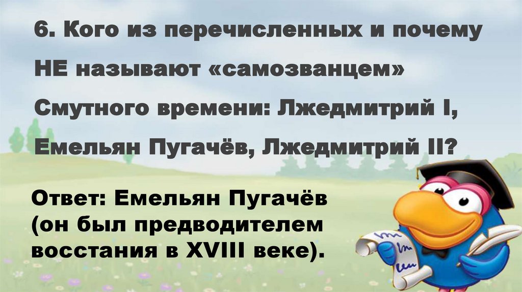 6. Кого из перечисленных и почемуНЕ называют «самозванцем»