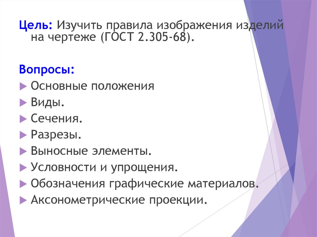 Цель: Изучить правила изображения изделийна чертеже (ГОСТ 2.305-68).