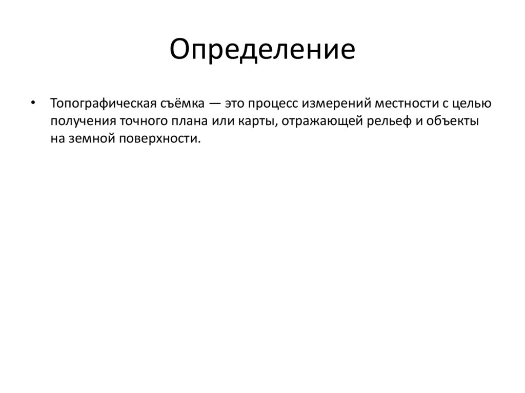 Определение• Топографическая съёмка — это процесс измерений местности с целью