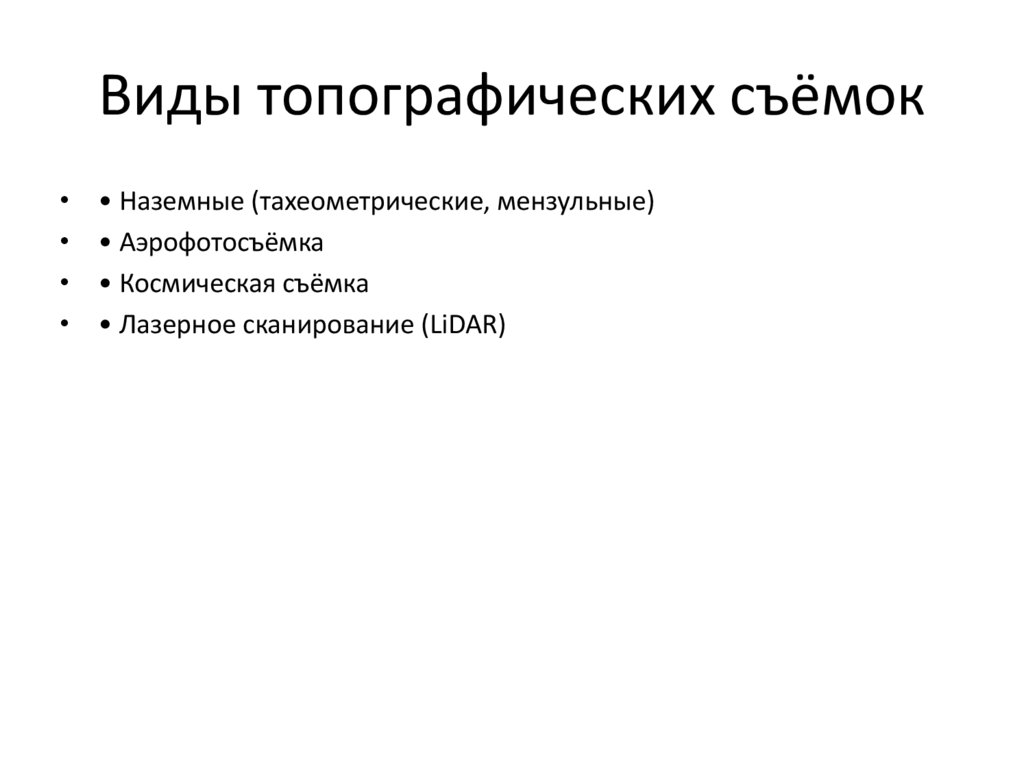 Виды топографических съёмок• Наземные (тахеометрические, мензульные)