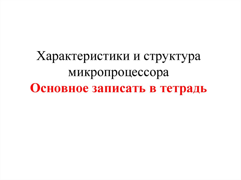 1. Характеристики и структура микропроцессора Основное записать в тетрадь