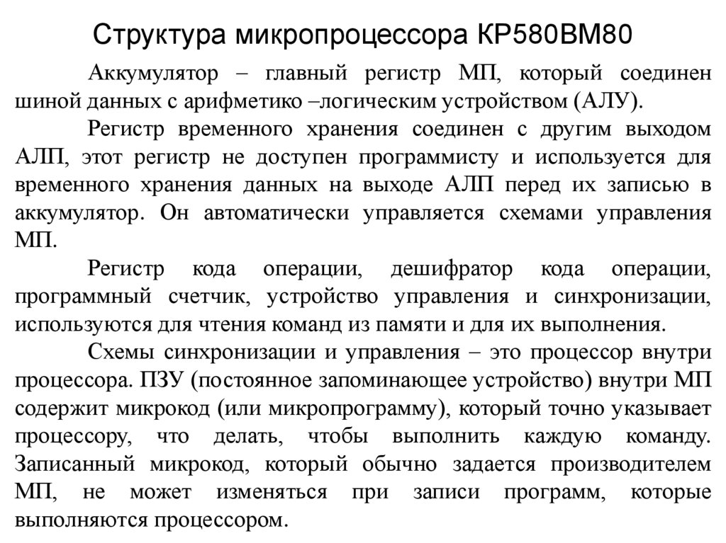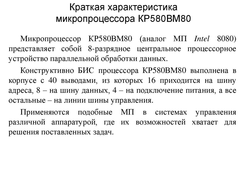 Микропроцессор КР580ВМ80 (аналог МП Intel 8080)