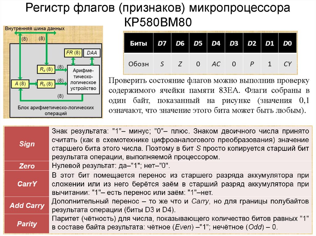 Регистр флагов (признаков) микропроцессораКР580ВМ80