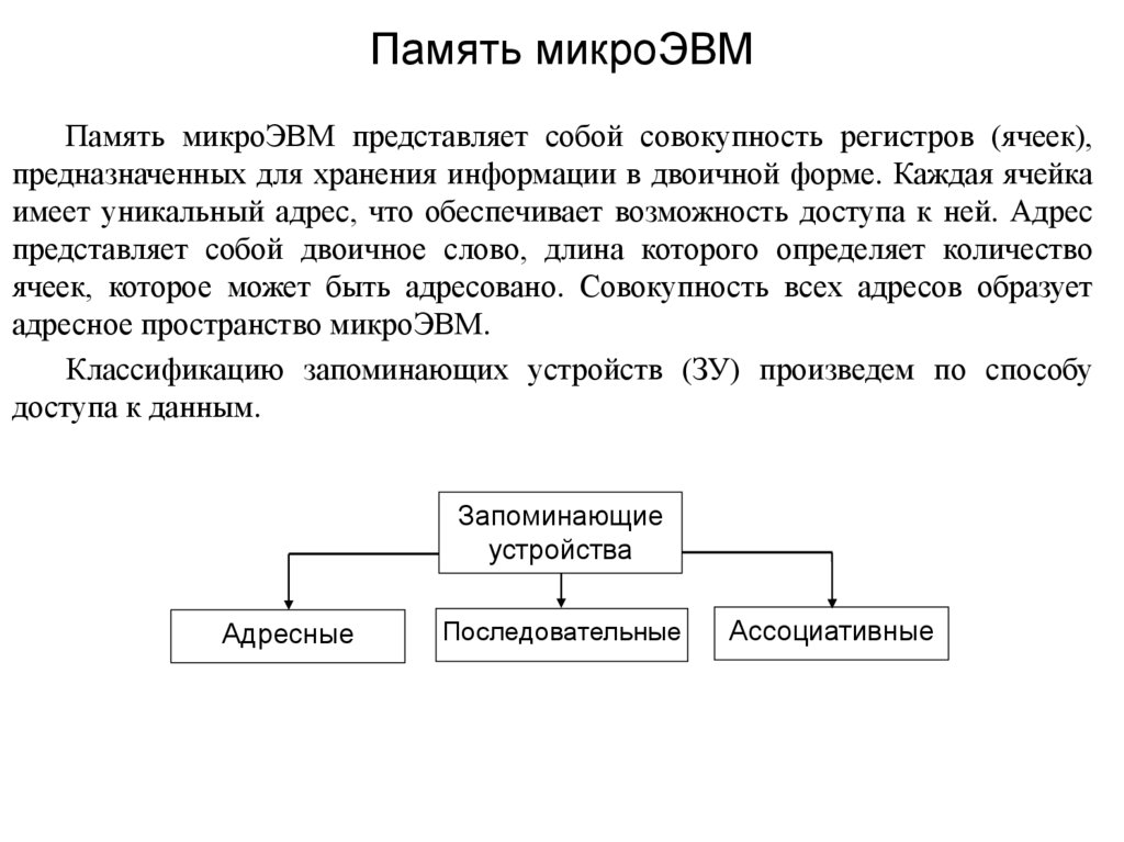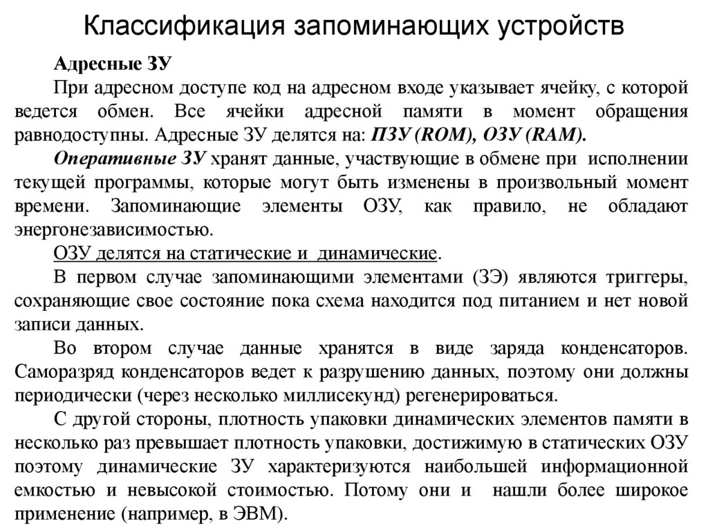 равнодоступны. Адресные ЗУ делятся на: ПЗУ (ROM), ОЗУ (RAM).