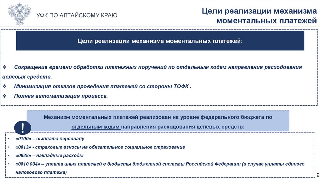УФК ПО АЛТАЙСКОМУ КРАЮЦели реализации механизма