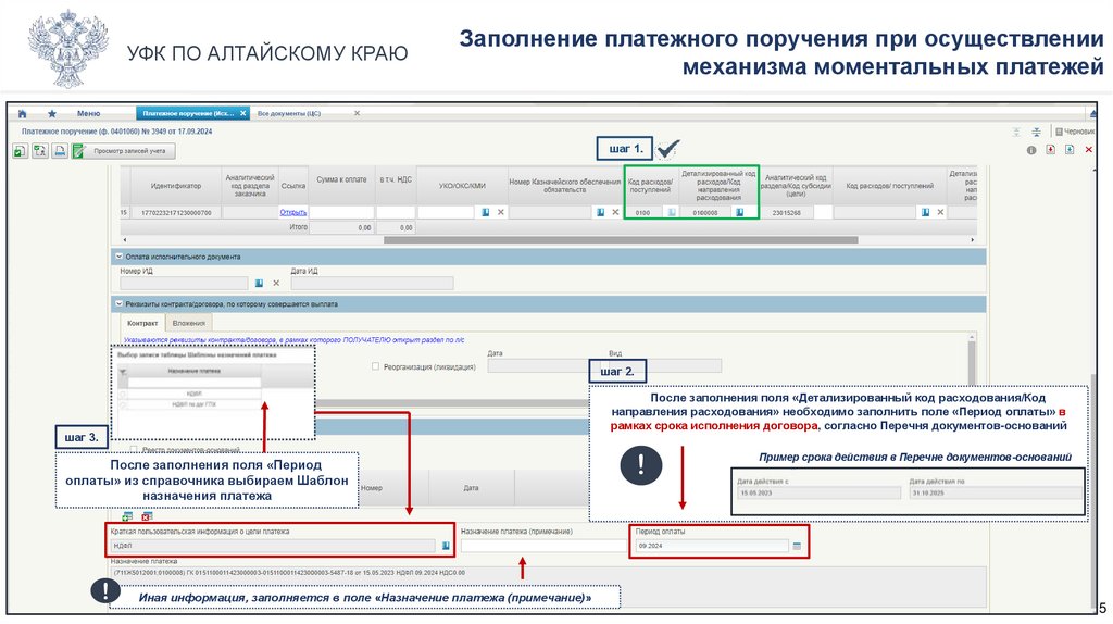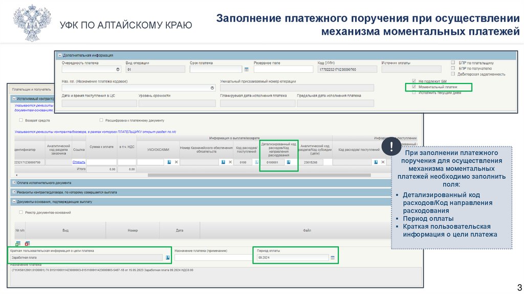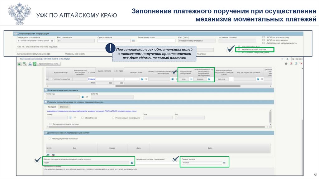 УФК ПО АЛТАЙСКОМУ КРАЮЗаполнение платежного поручения при осуществлении