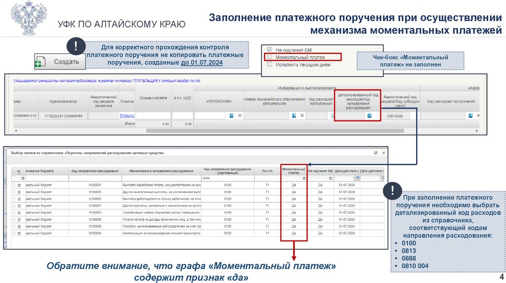 Сокращение времени обработки платежных поручений по отдельным кодам направления расходования