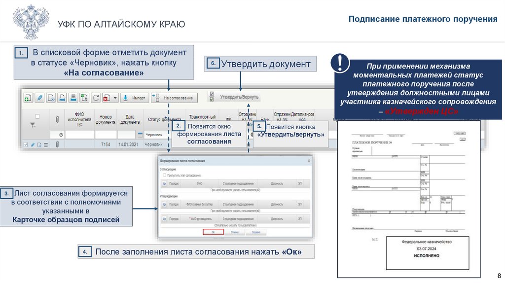 Подписание платежного порученияУФК ПО АЛТАЙСКОМУ КРАЮ