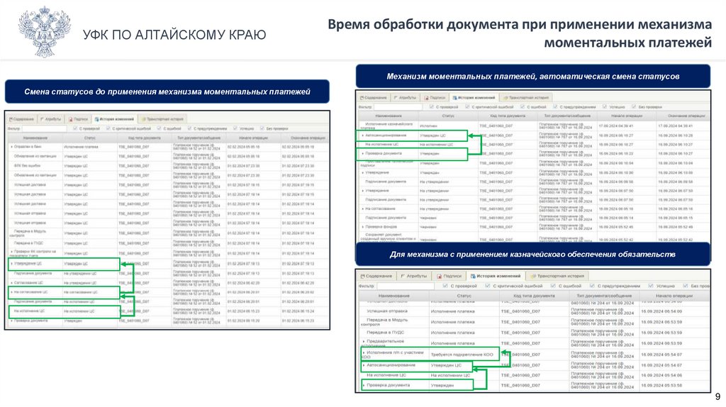 УФК ПО АЛТАЙСКОМУ КРАЮВремя обработки документа при применении механизма