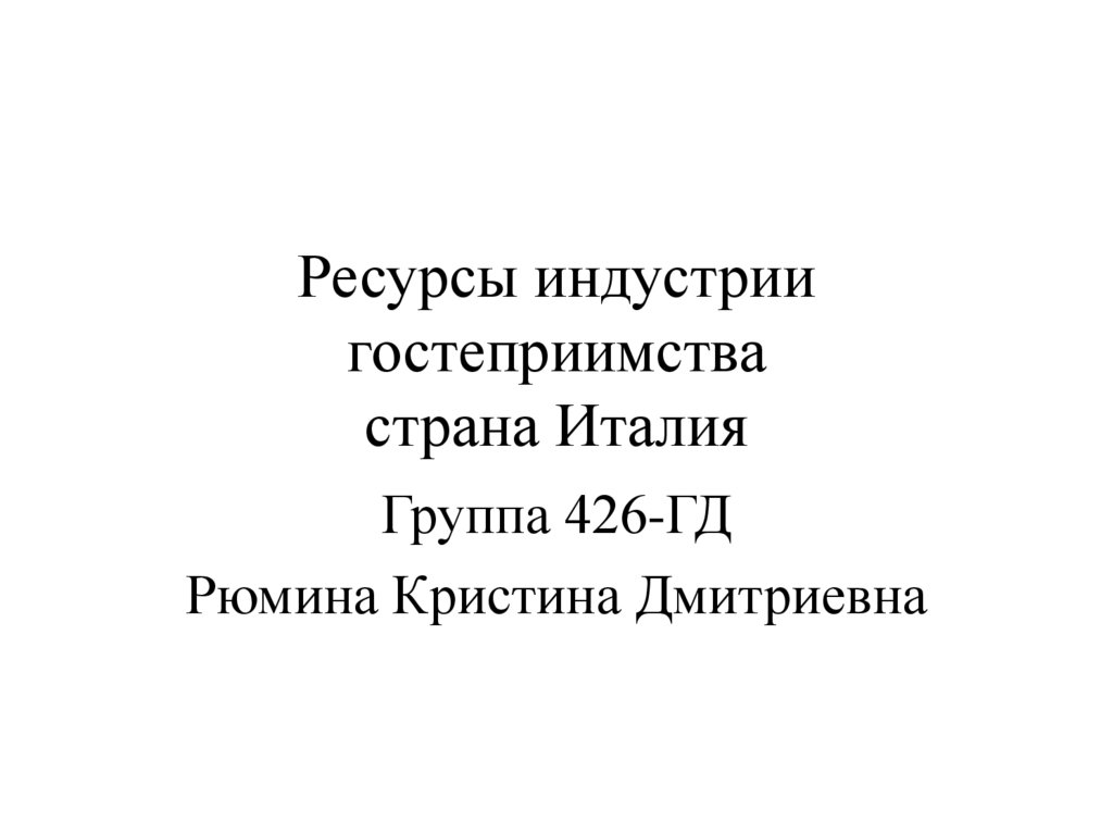 1. Ресурсы индустрии гостеприимства страна Италия