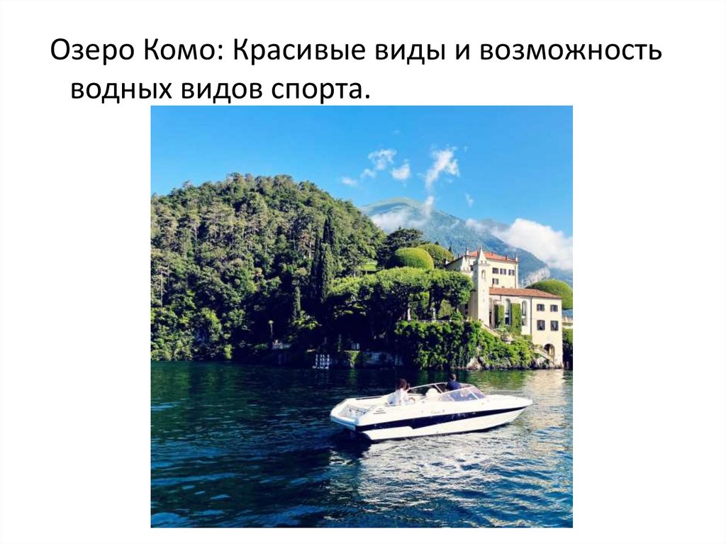 Озеро Комо: Красивые виды и возможностьводных видов спорта.