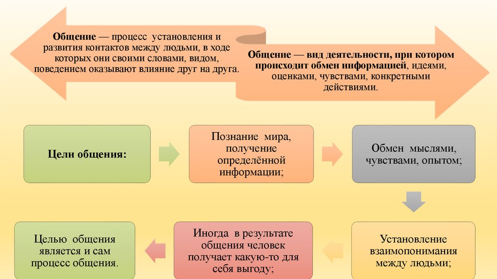 Общение — процесс установления иразвития контактов между людьми, в ходе