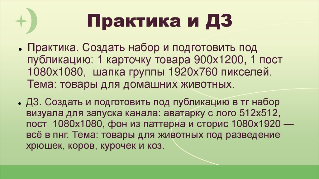 ДЗ. Создать и подготовить под публикацию в тг набор