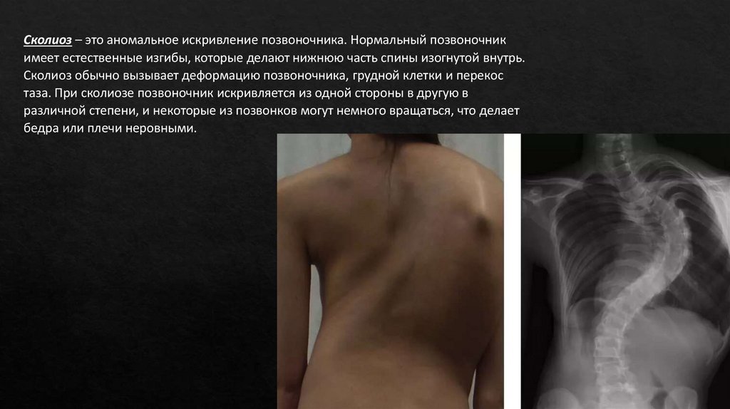 искривления, в результате чего позвоночник принимает S-образную форму. Одна