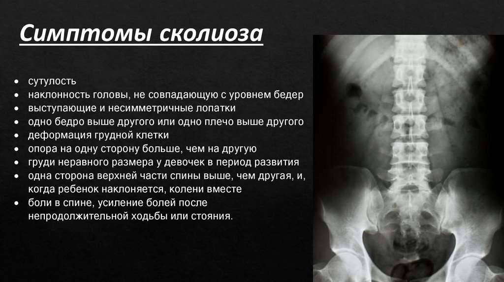 Сколиоз обычно вызывает деформацию позвоночника, грудной клетки и перекос