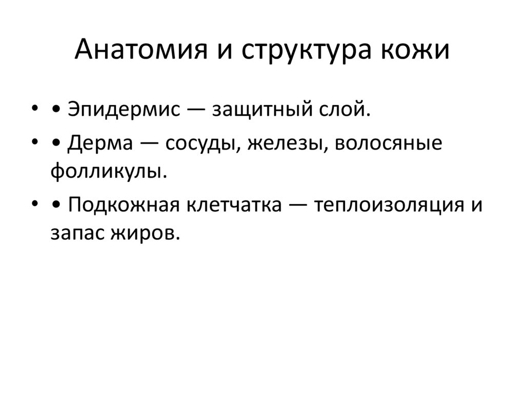 Анатомия и структура кожи• • Эпидермис — защитный слой.