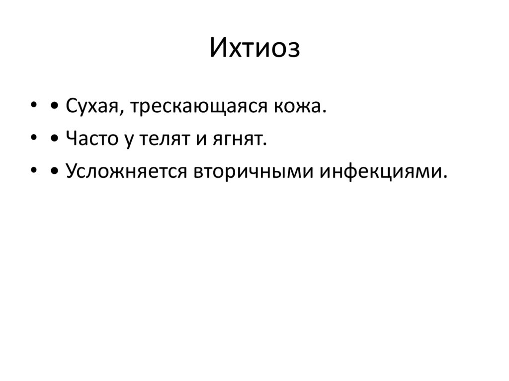 Ихтиоз• • Сухая, трескающаяся кожа.