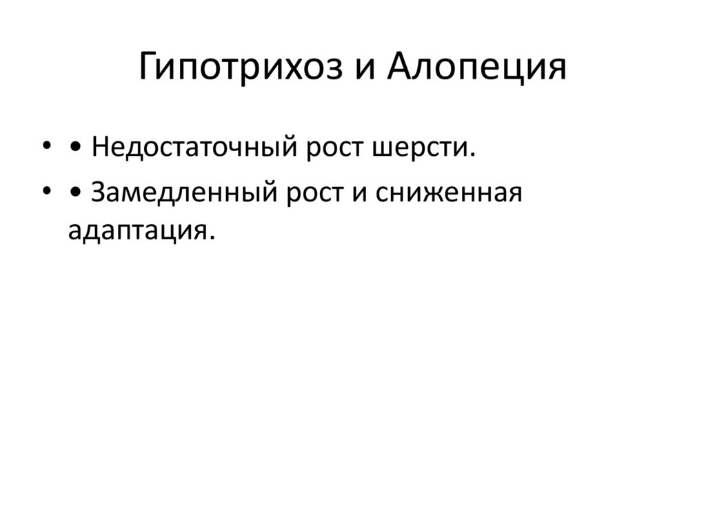 Гипотрихоз и Алопеция• • Недостаточный рост шерсти.
