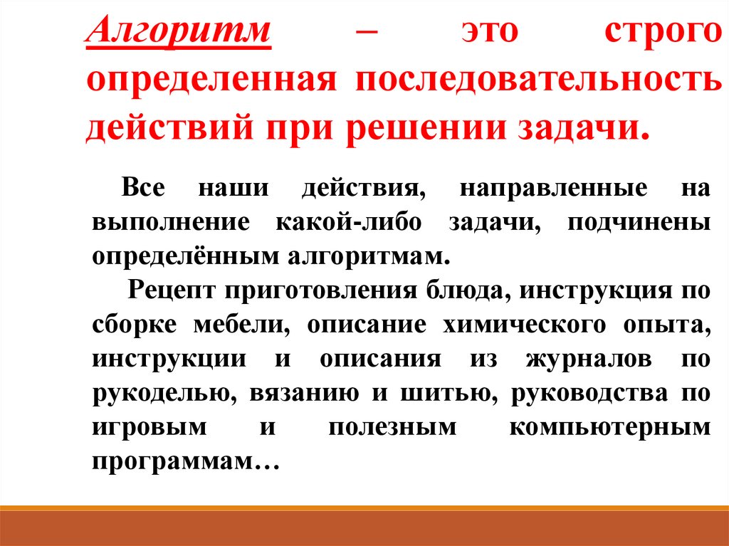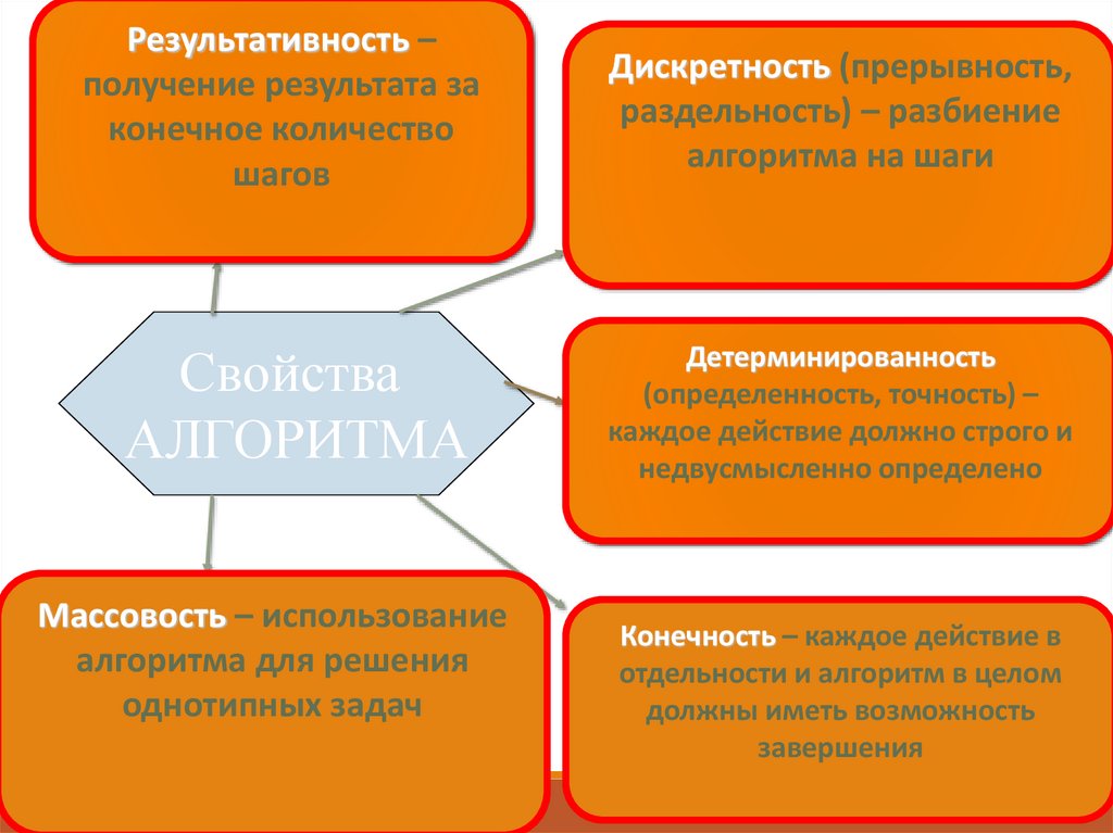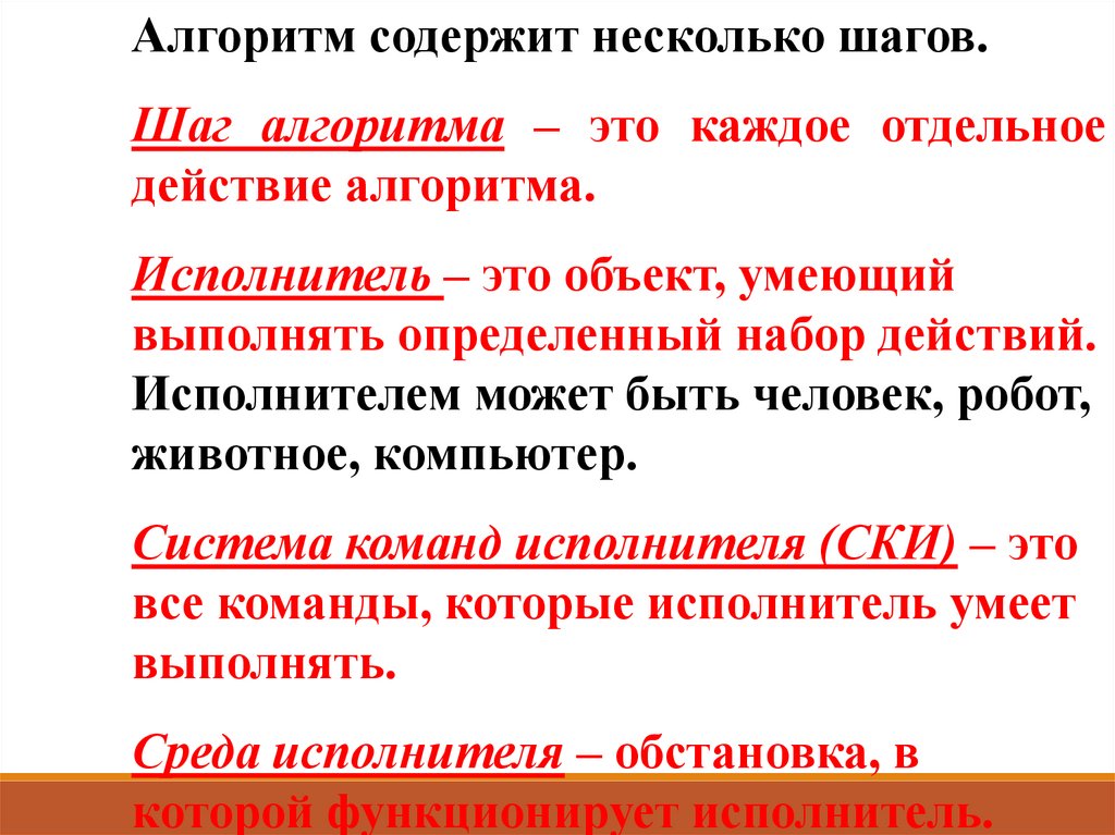 Алгоритм содержит несколько шагов.Шаг алгоритма – это каждое отдельное