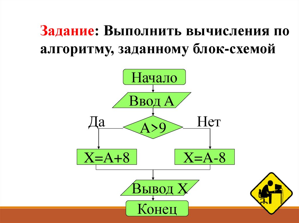 Задание: Выполнить вычисления поалгоритму, заданному блок-схемой