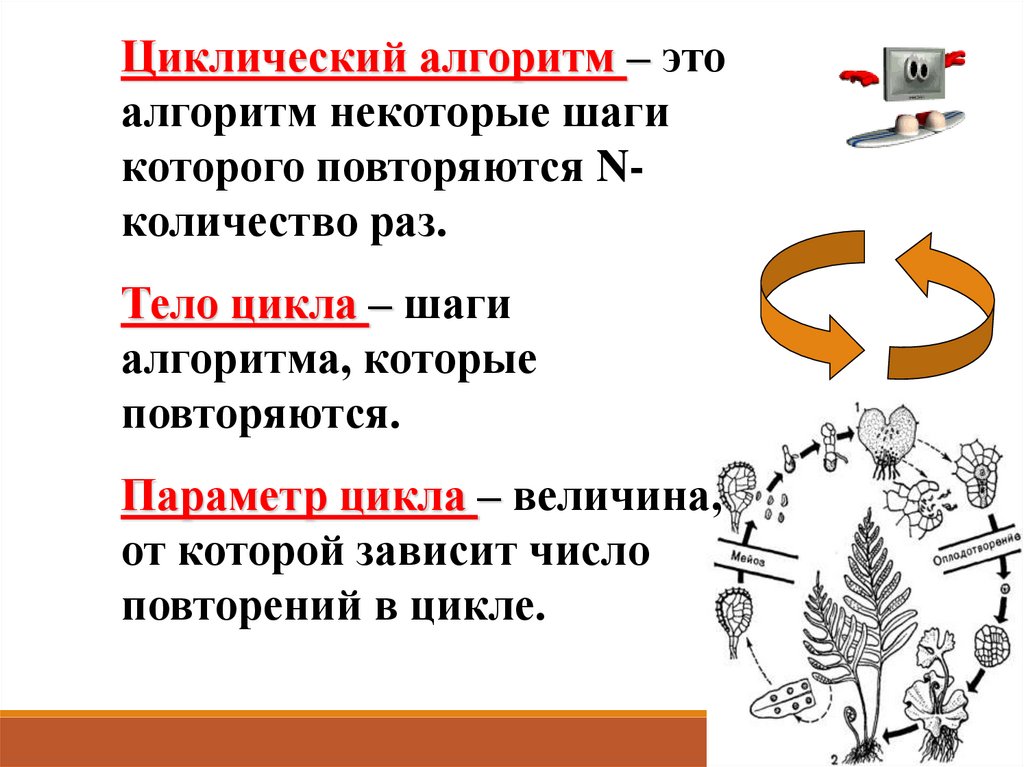 Циклический алгоритм – этоалгоритм некоторые шаги