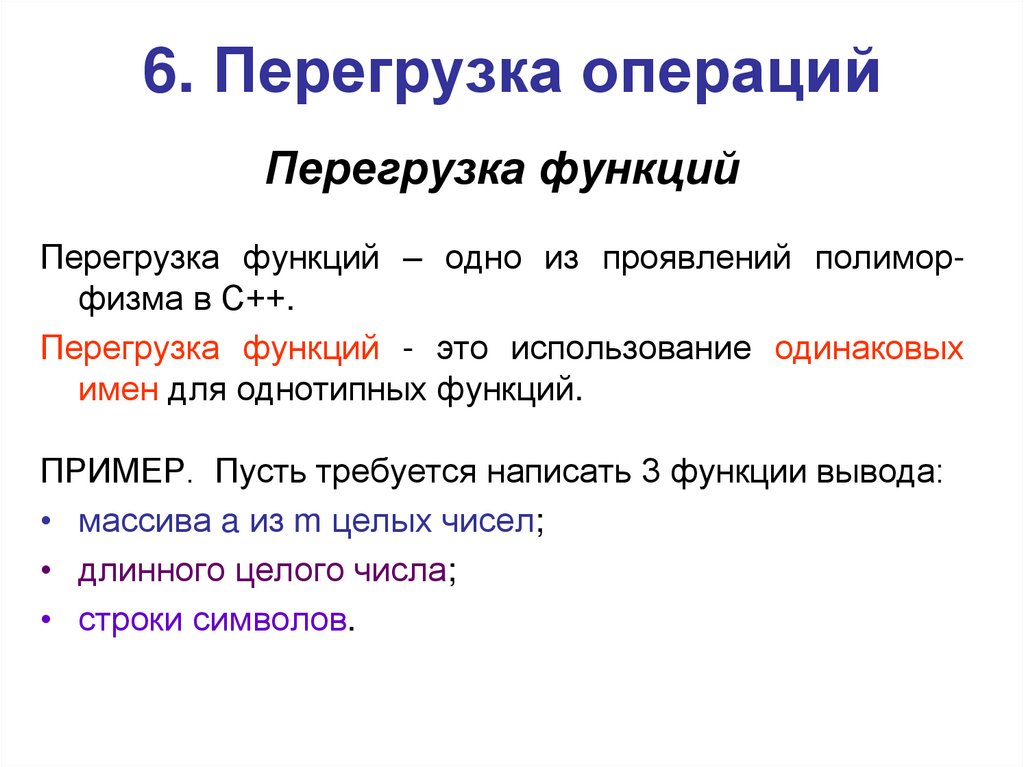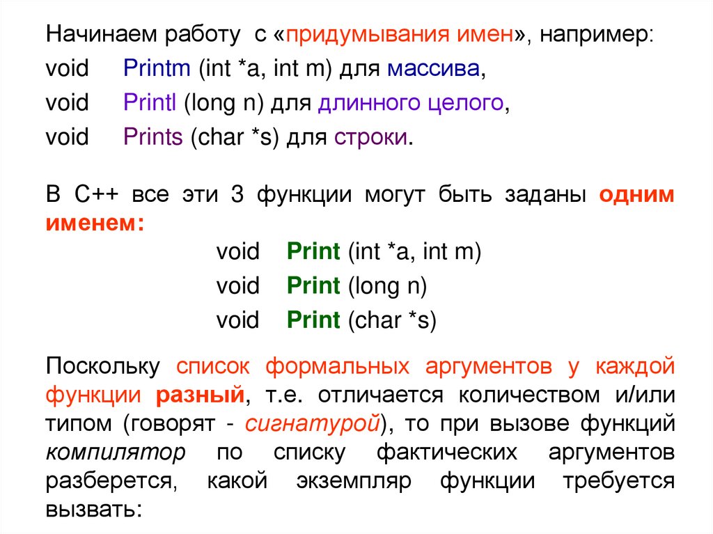 Перегрузка функцийПерегрузка функций ‒ одно из проявлений полиморфизма в С++.