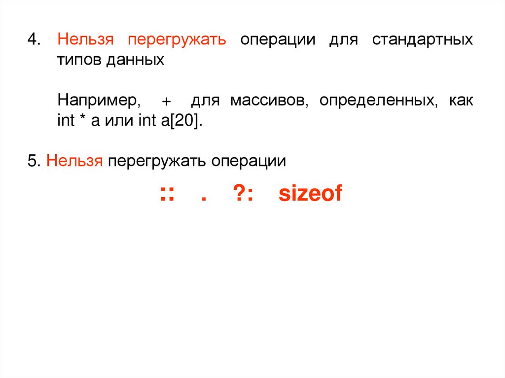 В С++ можно выполнить перегрузку операций дляобъектов класса.