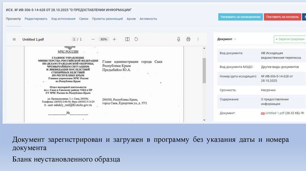 Документ зарегистрирован и загружен в программу без указания даты и номерадокумента