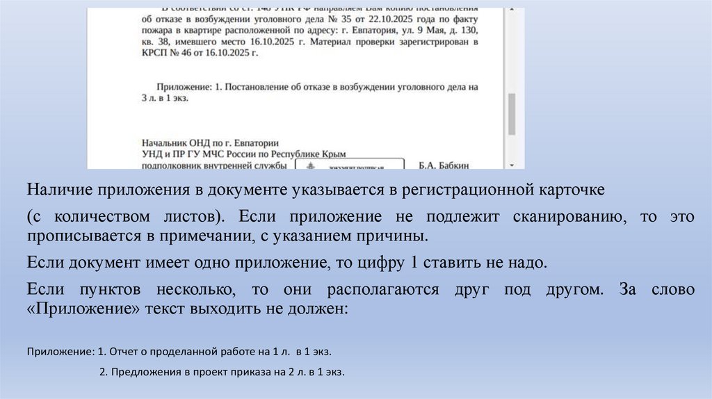 регистрационной карточке. Если приложение не подлежит сканированию, то это