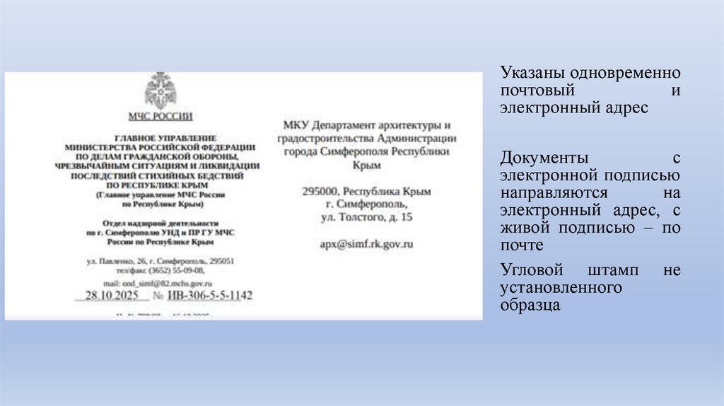 При отправке письма по электронной почте, почтовый адрес не указывается.