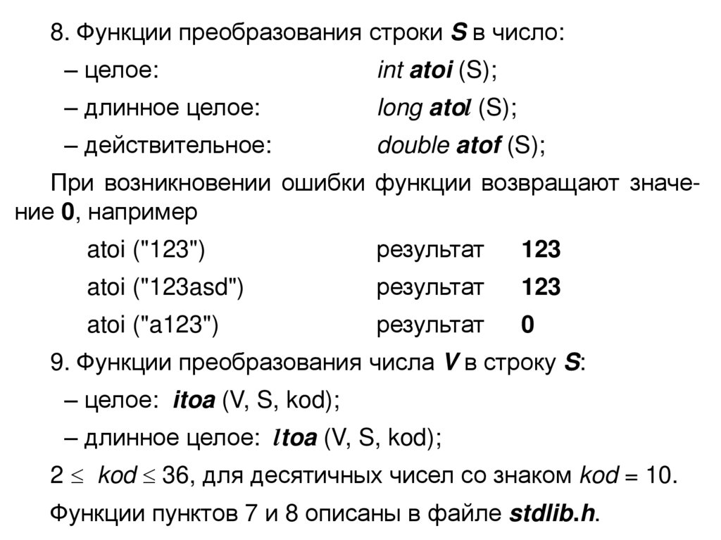 1. Результат функции strlen (S) – длина (len) строки (str) S