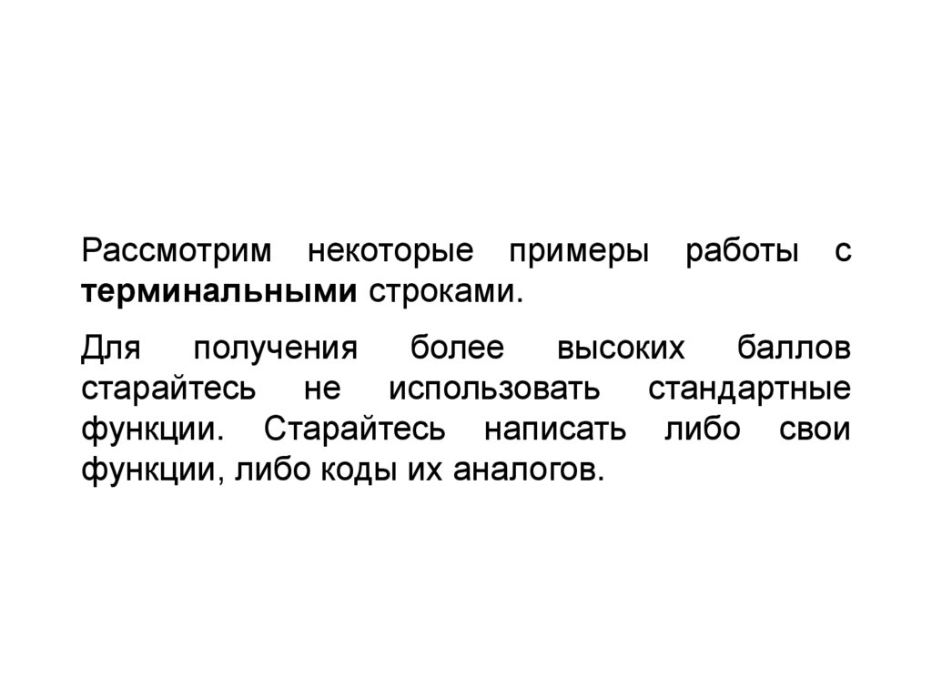 Рассмотрим некоторые примерытерминальными строками.