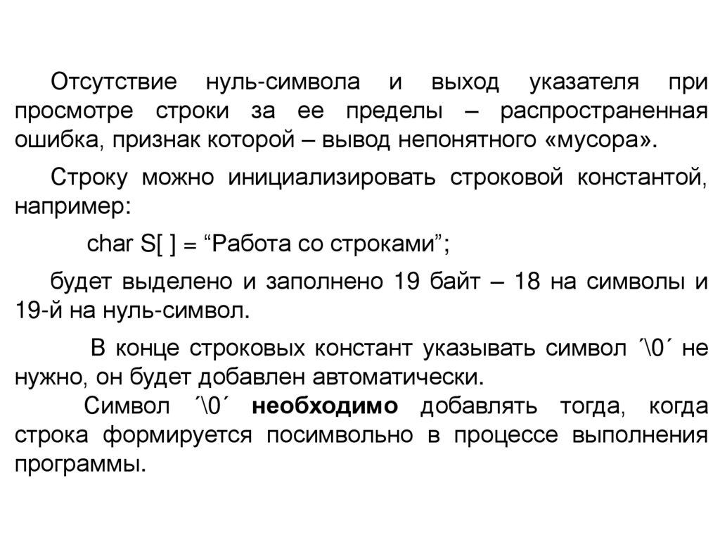 Отсутствие нуль-символа и выход указателя припросмотре строки за ее пределы – распространенная