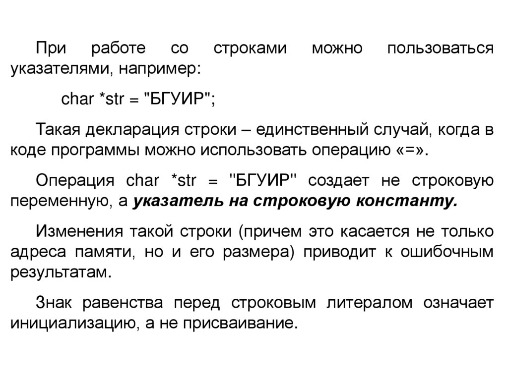 При работе со строкамиуказателями, например: