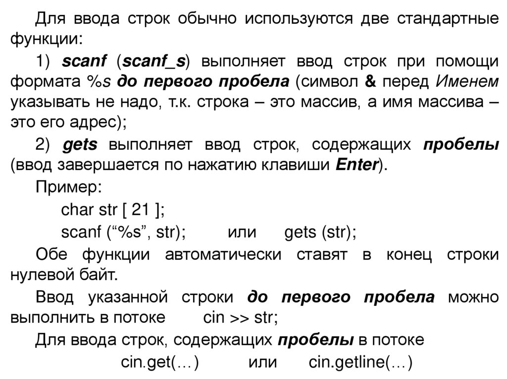 Для ввода строк обычно используются две стандартныефункции: