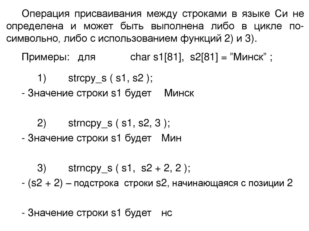 Примеры для строки: char str [ 21 ] = “Минск”;