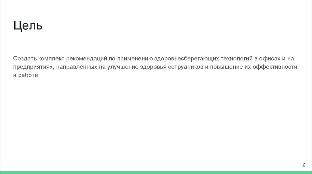 ЦельСоздать комплекс рекомендаций по применению здоровьесберегающих технологий в офисах и на