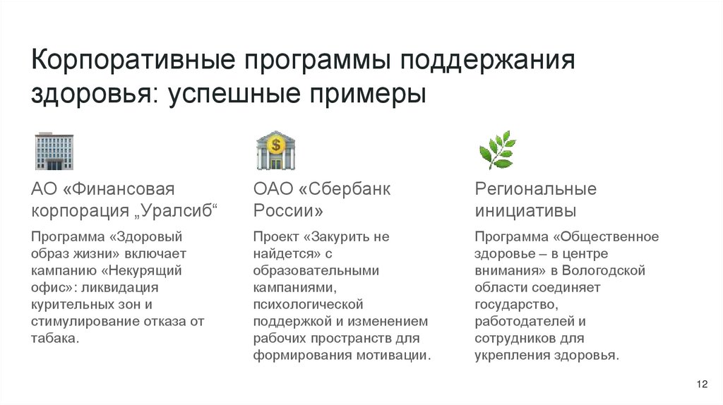 здоровья», поддерживают привычки и командный дух. Поддержка работодателя и